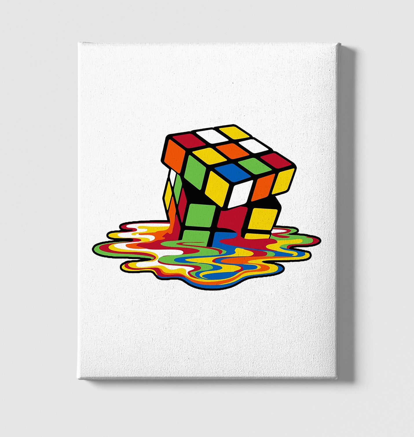 Color Rubic Cubes White Canvas Wall Art 35x40cm