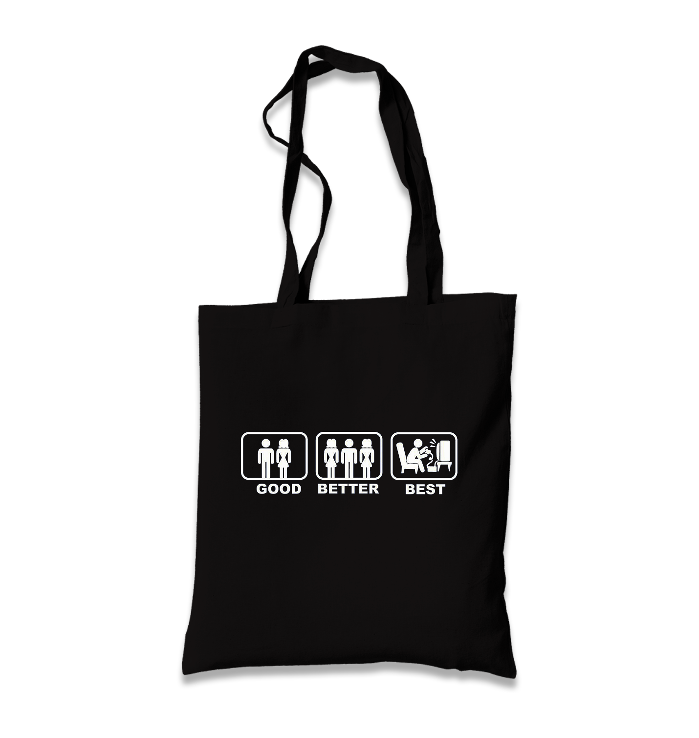 Carry your stuff in style with this Good Better Best Canvas Totebag! Crafted from black canvas with a stylish design, this bag is sure to make an impression. It's perfect for the fashionista who doesn't take themselves too seriously and loves to add quirk and fun to their look!