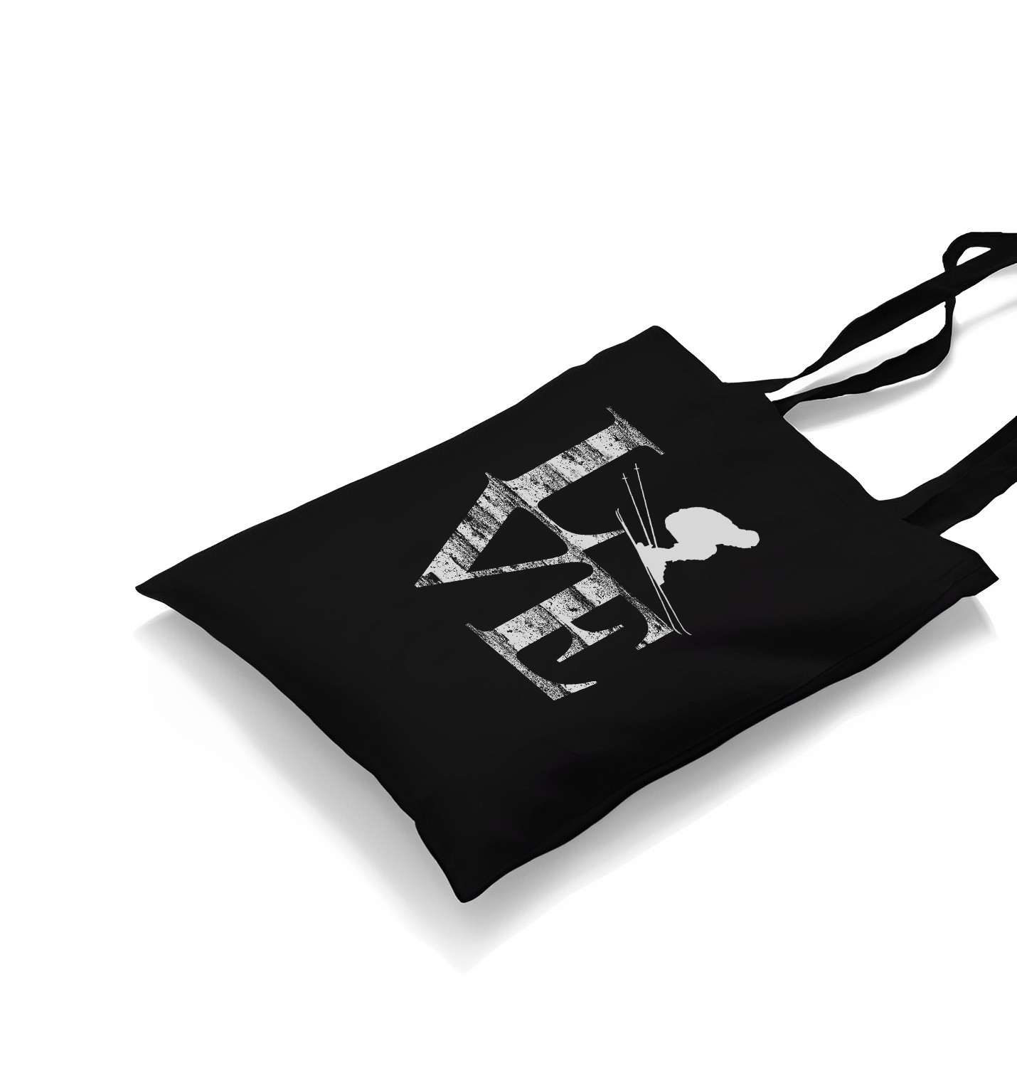 Reach new heights of style with this Love-Ski Totebag! Its lightweight black canvas fabric and playful print will get you noticed on the slopes and everywhere in between. Get ready to be the star of your own winter wonderland!
